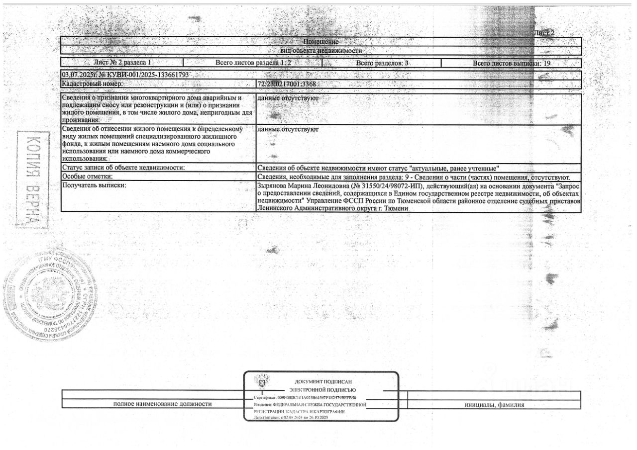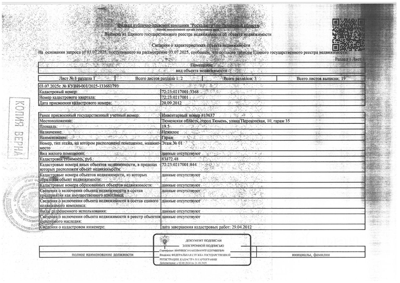 Должник: Коростелев М.А, собственник: Коростелев М.А Лот: Нежилое помещение (гараж), площадь 19,50 кв.м., кадастровый номер: 72:23:0217001:3368, г. Тюмень, ул. Перекопская 10, гараж 35, н/ц: 277440 р., з-к: 41616 р., код: 0001, рег. 72-011126-ГМУ;