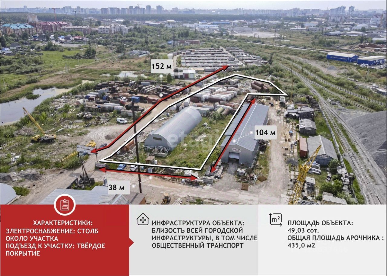 Продается земельный участок 49 соток коммерческого назначения с АНГАРОМ. Площадь арочника- 435м2.