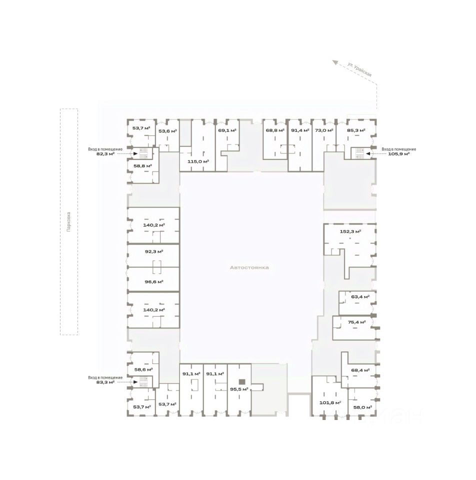 Помещение свободного назначения на 1 этаже, общая площадь 58.64 кв.м., без отделки. Стоимость помещения 13,050,000 руб., цена за кв.м 222,544 руб.