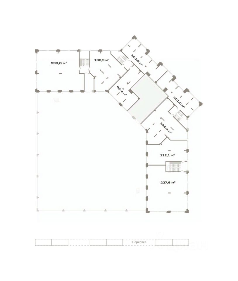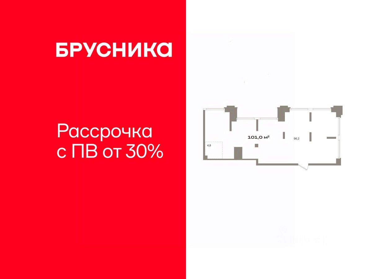 Помещение свободного назначения на 2 этаже, общая площадь 101.04 кв.м., без отделки. Стоимость помещения 20,450,000 руб., цена за кв.м 202,395 руб.