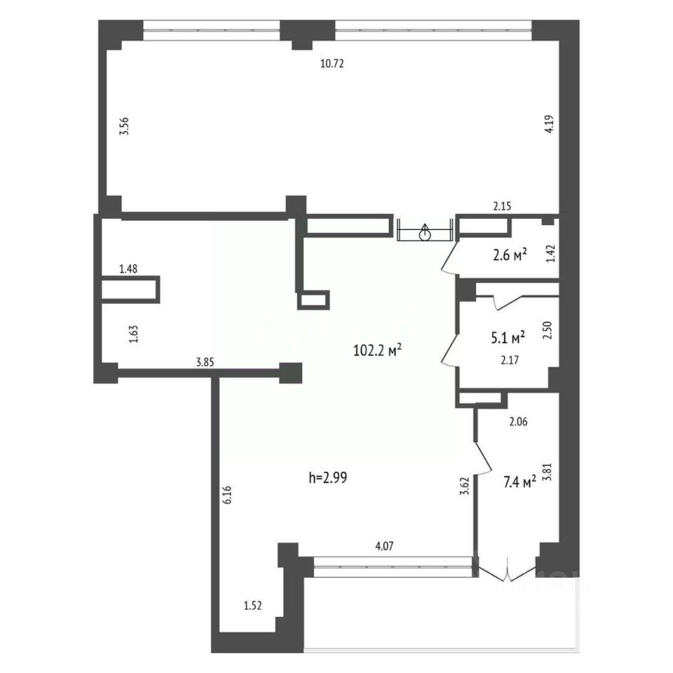 - Высота потолка от 3 до 2,7 метра;