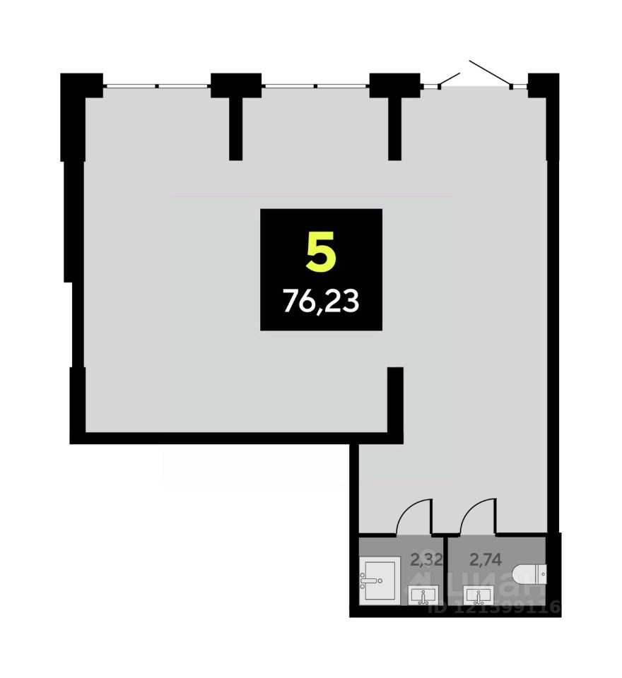 Помещение свободного назначения на 1 этаже, общая площадь 76.23 кв.м. Стоимость помещения 14,190,000 руб., цена за кв.м 186,147 руб.