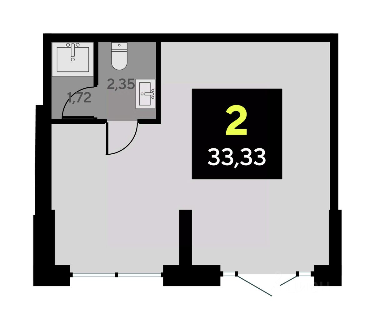 Помещение свободного назначения на 1 этаже, общая площадь 33.33 кв.м. Стоимость помещения 7,360,000 руб., цена за кв.м 220,822 руб.