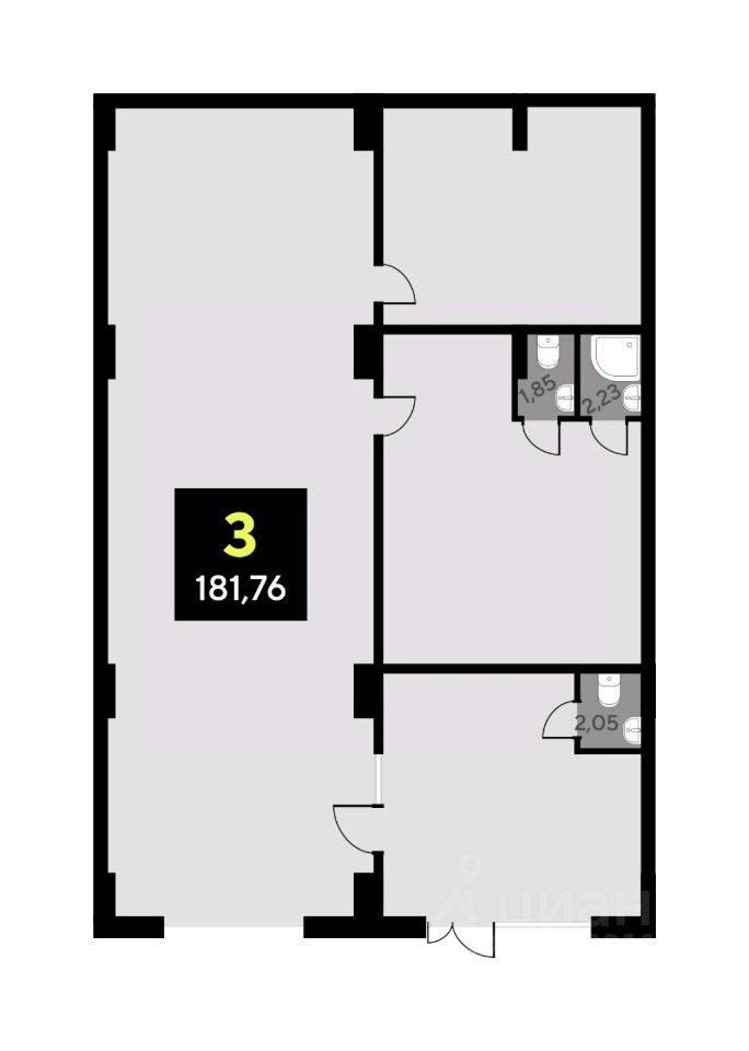 Помещение свободного назначения на 1 этаже, общая площадь 181.76 кв.м. Стоимость помещения 38,900,000 руб., цена за кв.м 214,018 руб.