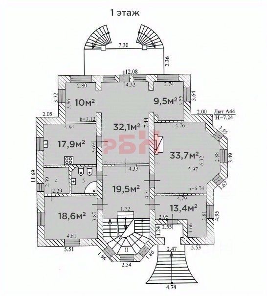 на 1-3 этажах 6 спален, 4 сан.узла с ванной и душевой кабиной