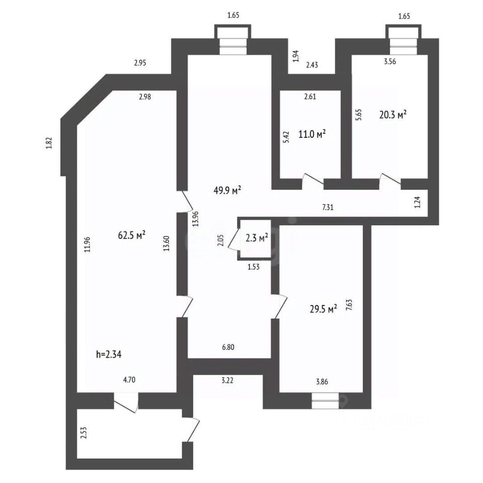- Высота потолков 2,3 м