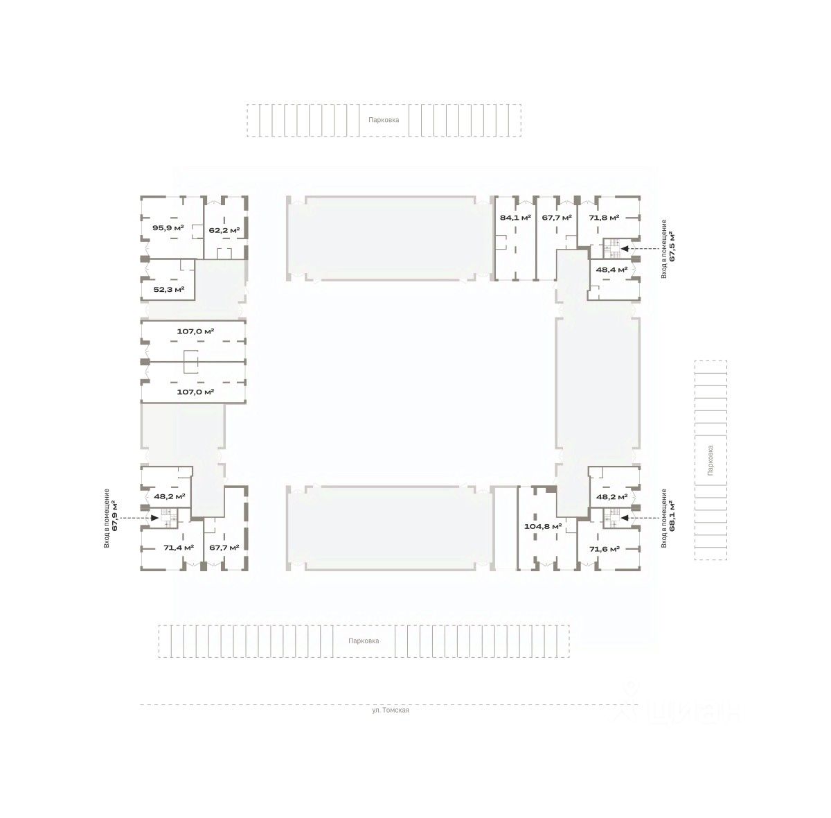 Отдельный вход в каждое помещение