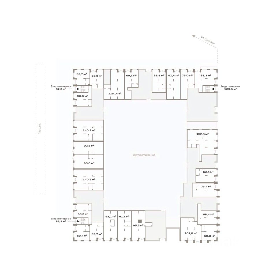 Помещение свободного назначения на 1 этаже, общая площадь 53.7 кв.м., без отделки. Стоимость помещения 16,700,000 руб., цена за кв.м 310,986 руб.