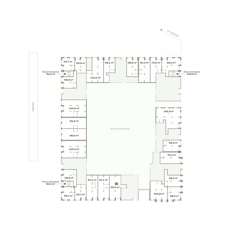 Помещение свободного назначения на 1 этаже, общая площадь 140.2 кв.м., без отделки. Стоимость помещения 27,790,000 руб., цена за кв.м 198,216 руб.