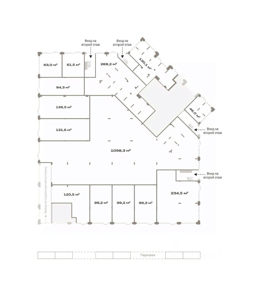 Помещение свободного назначения на 1 этаже, общая площадь 130 кв.м., без отделки. Стоимость помещения 39,200,000 руб., цена за кв.м 301,538 руб.