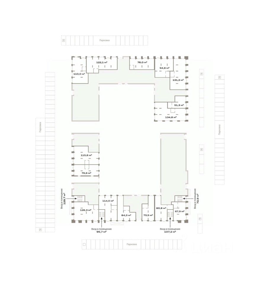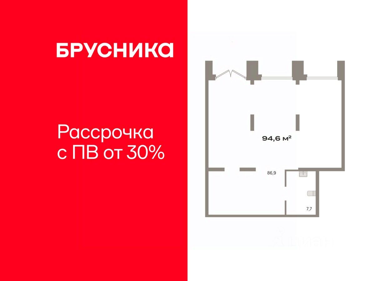Помещение свободного назначения на 1 этаже, общая площадь 94.6 кв.м., без отделки. Стоимость помещения 24,210,000 руб., цена за кв.м 255,919 руб.