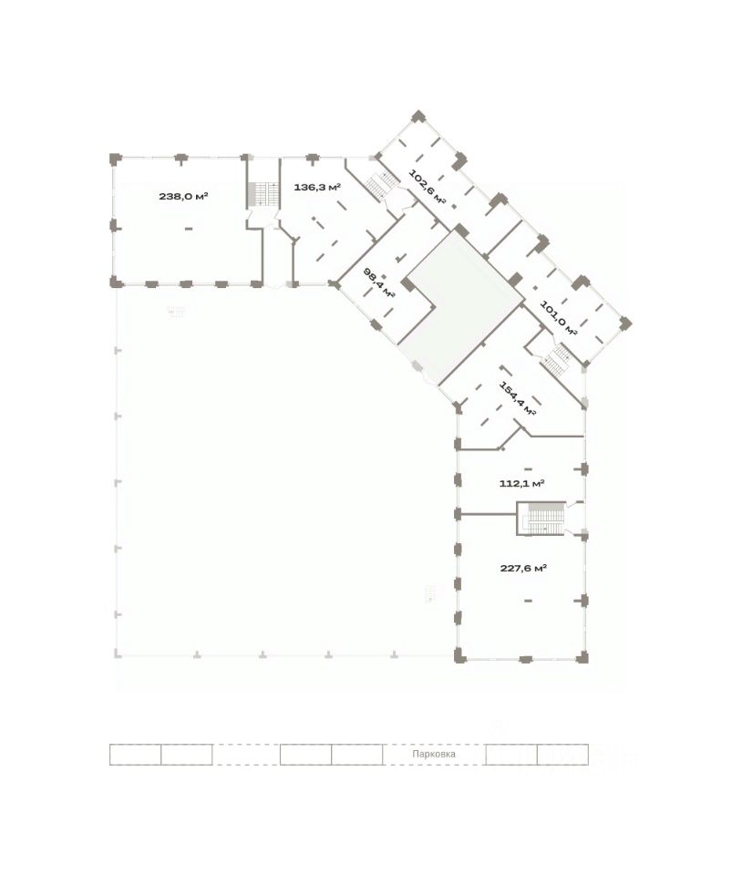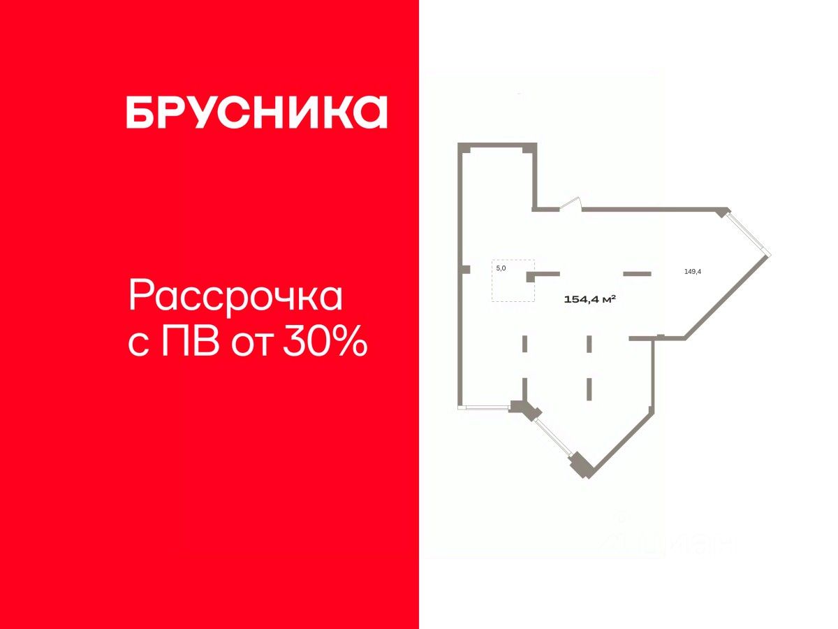 Помещение свободного назначения на 2 этаже, общая площадь 154.4 кв.м., без отделки. Стоимость помещения 29,140,000 руб., цена за кв.м 188,730 руб.