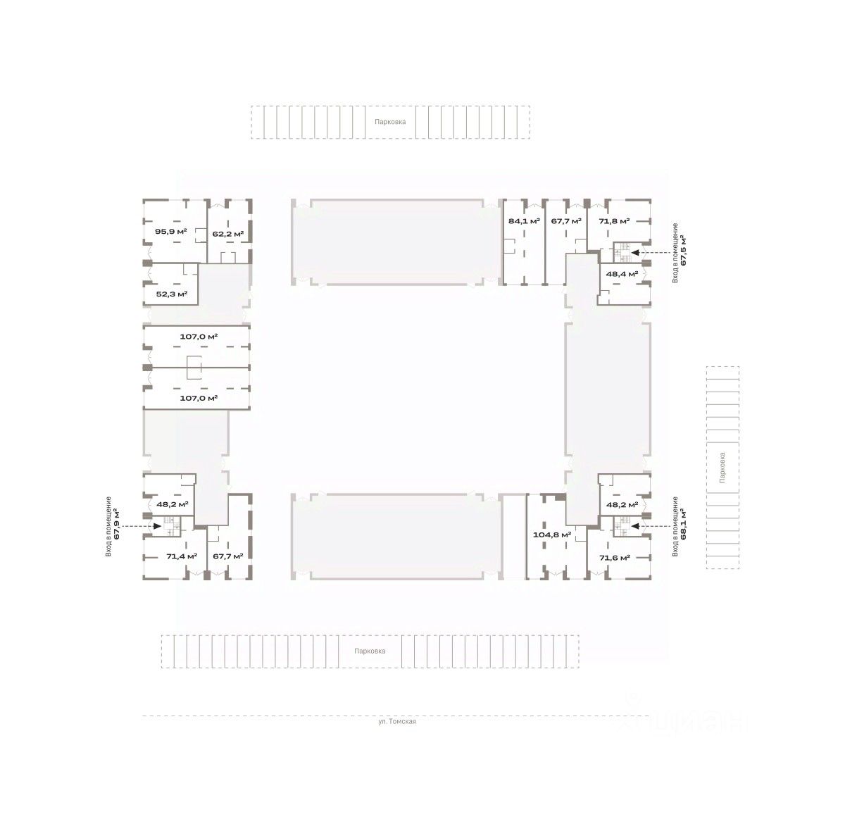 Отдельный вход в каждое помещение