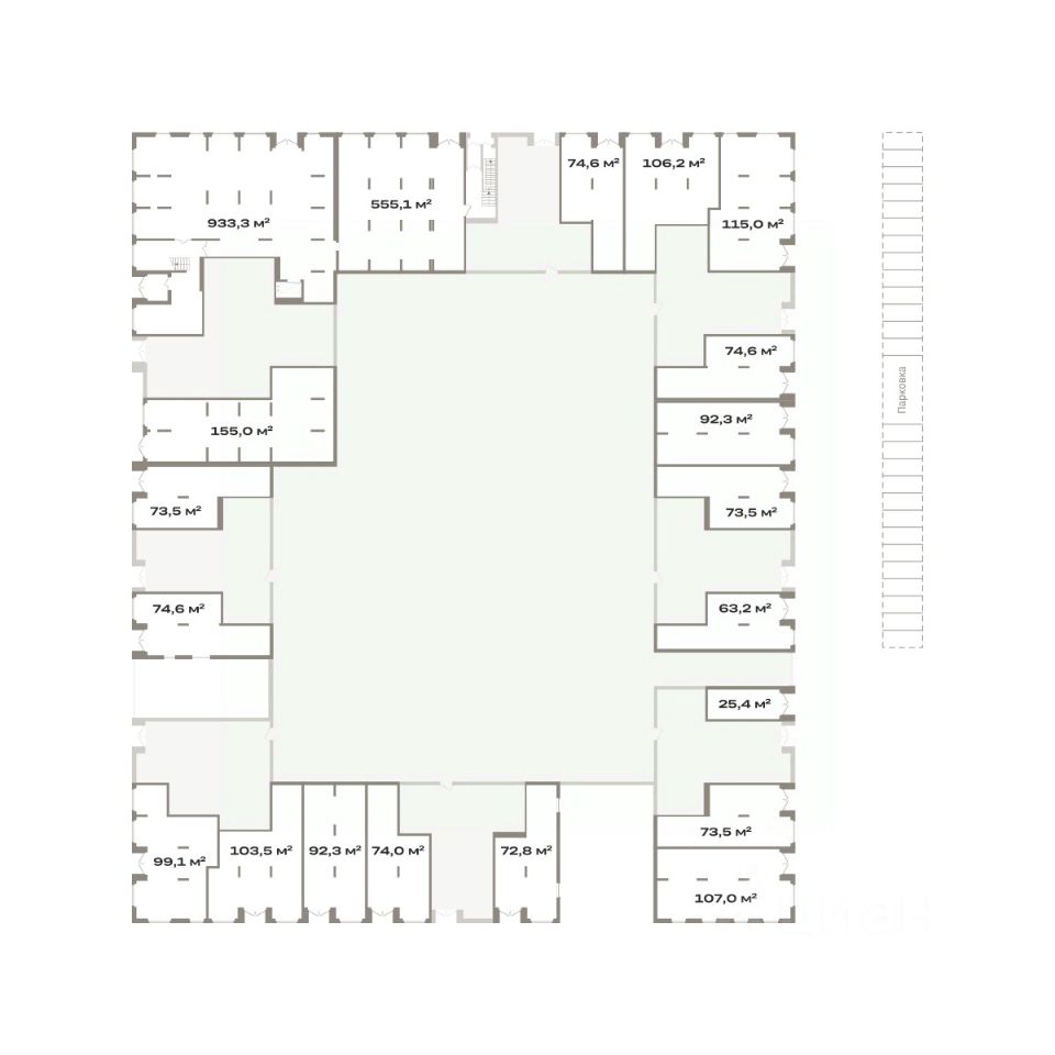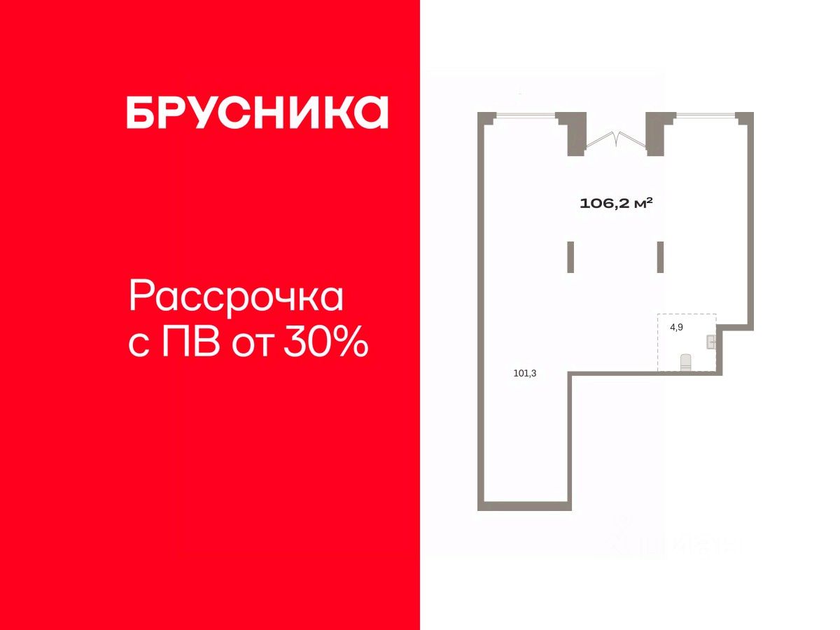 Помещение свободного назначения на 1 этаже, общая площадь 106.2 кв.м., без отделки. Стоимость помещения 26,840,000 руб., цена за кв.м 252,730 руб.