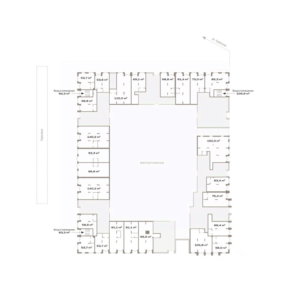 Помещение свободного назначения на 1 этаже, общая площадь 115 кв.м., без отделки. Стоимость помещения 29,770,000 руб., цена за кв.м 258,869 руб.