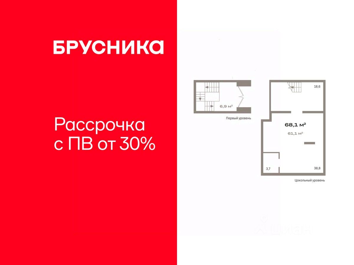 Помещение свободного назначения на -1 этаже, общая площадь 68 кв.м., без отделки. Стоимость помещения 12,500,000 руб., цена за кв.м 183,823 руб.