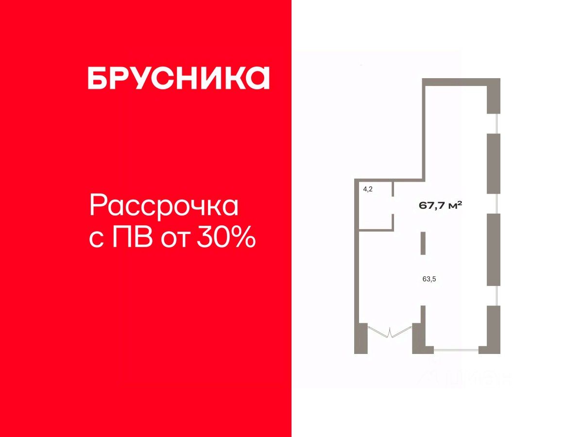 Помещение свободного назначения на 1 этаже, общая площадь 67.7 кв.м., без отделки. Стоимость помещения 15,540,000 руб., цена за кв.м 229,542 руб.