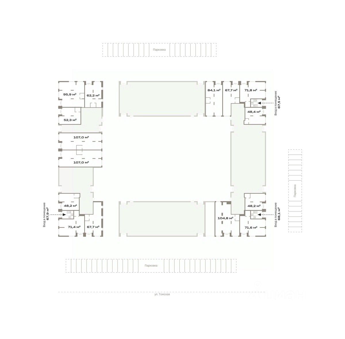 Отдельный вход в каждое помещение