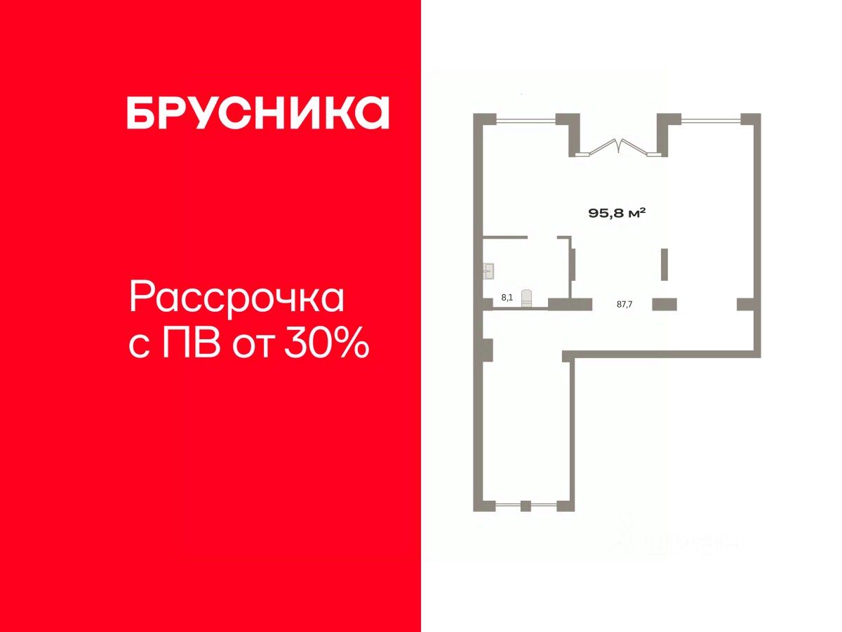 Помещение свободного назначения на 1 этаже, общая площадь 95.8 кв.м., без отделки. Стоимость помещения 20,690,000 руб., цена за кв.м 215,970 руб.