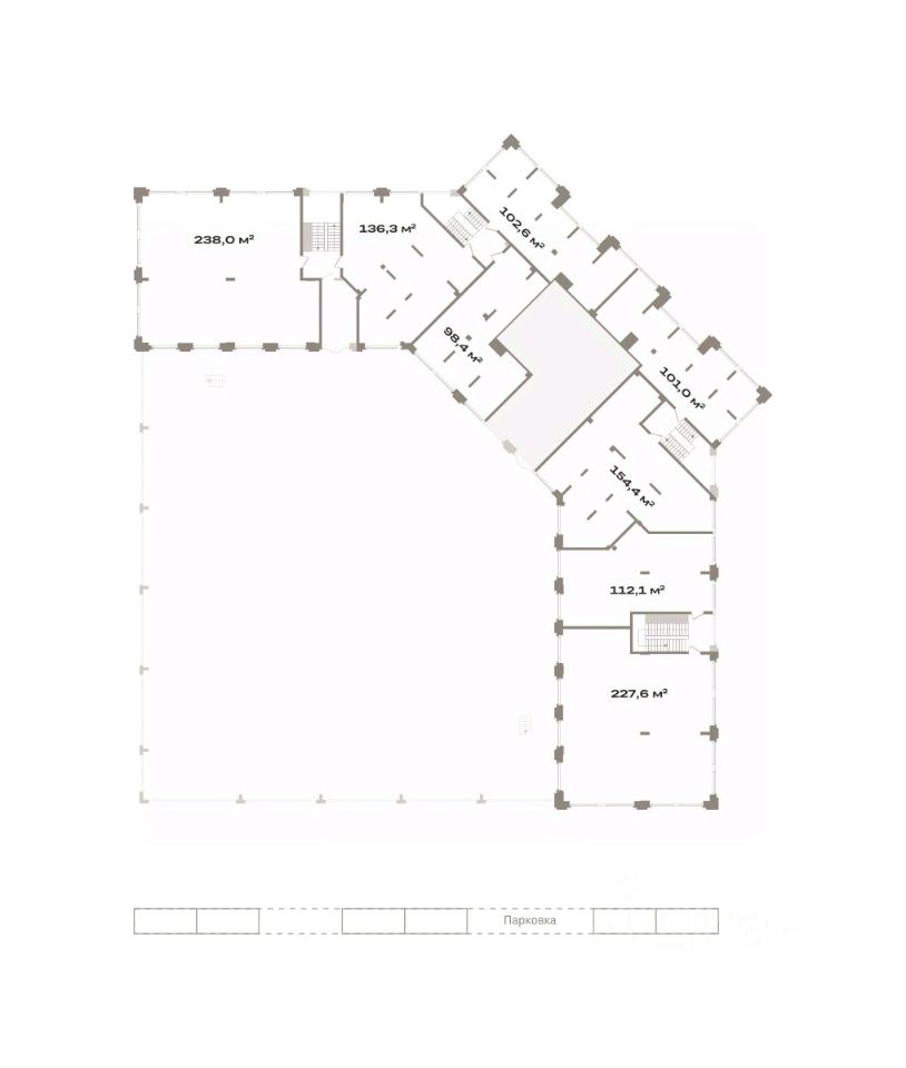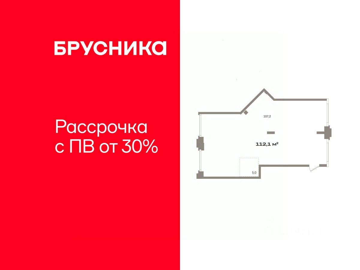 Помещение свободного назначения на 2 этаже, общая площадь 112.1 кв.м., без отделки. Стоимость помещения 21,390,000 руб., цена за кв.м 190,811 руб.