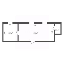Помещение на 3 небольших окна, потолок 3 метра, стены - витражное остекление с жалюзи. Перегородкой делится на кабинеты площадью 25 и 10 кв.м. Сделан хороший косметический ремонт, установлен кондиционер, жалюзи на витражах. Свой санузел с современной сантехникой.