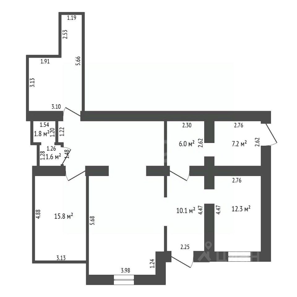 -8 комнат, санузел. Возможна перепланировка.