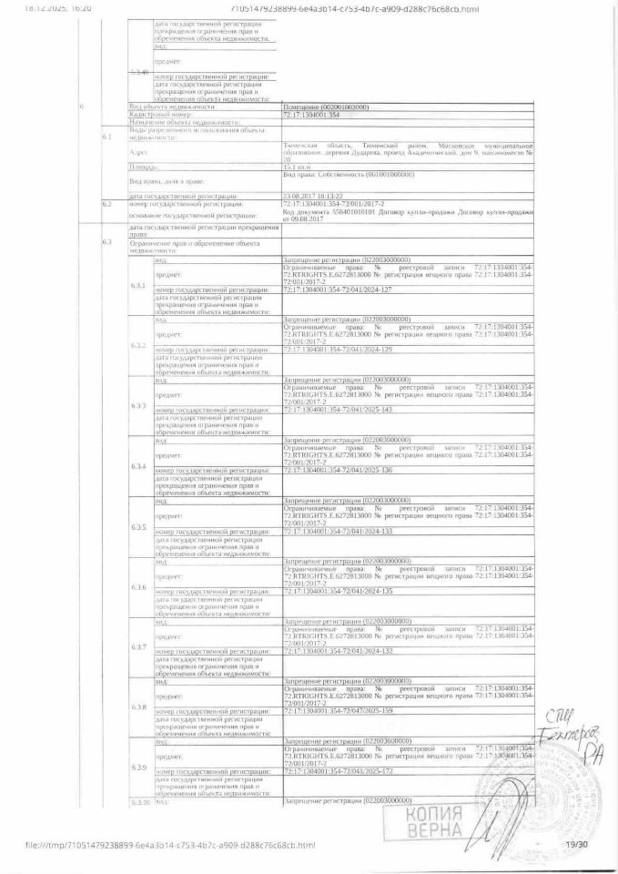 1. Должник: Агишев Р.С., собственник: Агишев Р.С. Лот: Нежилое помещение, площадь 15,1 кв. м. кадастровый номер: 72:17:1304001:354, Тюменский р-н., д.Дударева, проезд Академический, д. 9, машиноместо 28, (подвал), н/ц: 314075 р., з-к: 47111 р., код: 0001, рег. 72-011159;