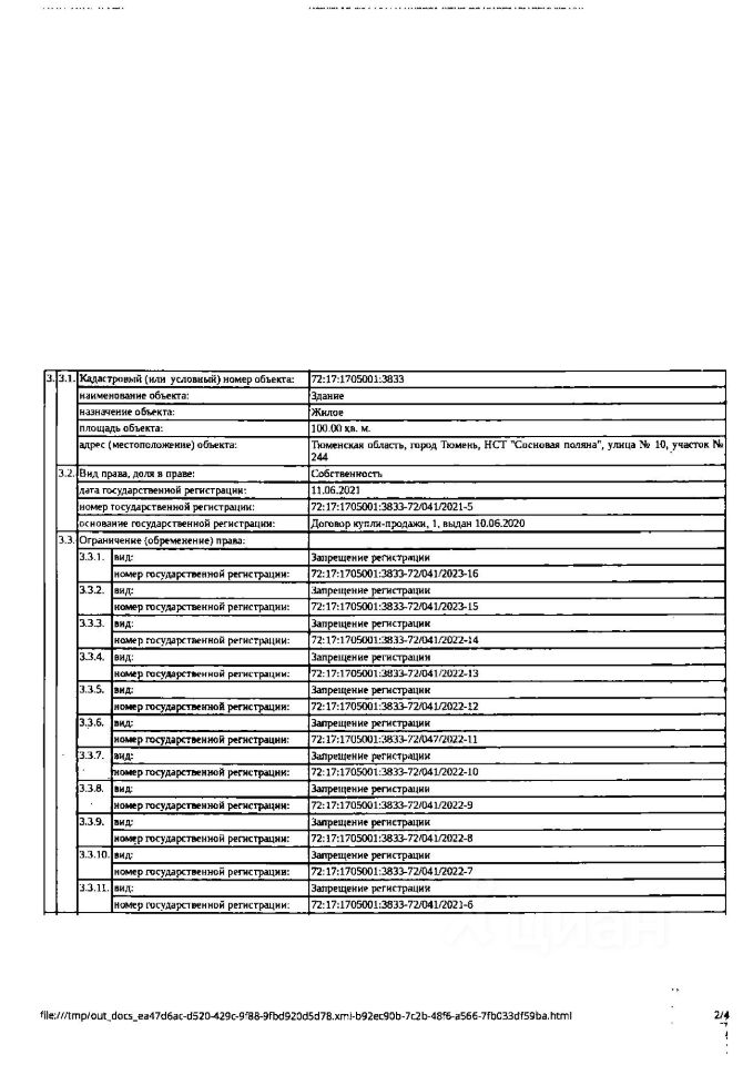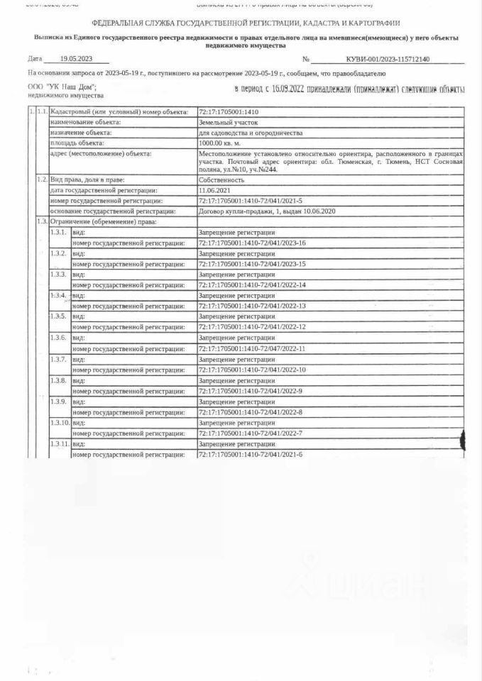 Должник: ООО УК "Наш дом", собственник: ООО УК "Наш дом" Лот: Земельный участок (земли сельскохозяйственного назначения, для садоводства и огородничества), площадь 1025 кв.м., кадастровый номер: 72:17:1705001:1410, жилой дом, площадь 100 кв.м., кадастровый номер: 72:17:1705001:3833, г.Тюмень, СНТ "Сосновая поляна", ул.10, уч.244, н/ц: 5205842 р., (в т.ч.НДС) з-к: 780876 р., код: 0001, рег. 72-011286;