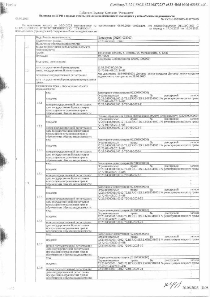 Должник: ООО "Турбийон" , собственник: ООО "Турбийон" Лот: Нежилое помещение, площадь 19,7 кв.м., кадастровый номер: 72:23:0430001:10012, г. Тюмень, ул. Мельникайте, д.125б, н/ц: 2298485 р., з-к: 344772 р., код: 0001, рег. 72-011265;