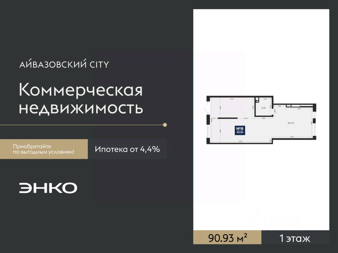Помещение свободного назначения на 1 этаже, общая площадь 90.93 кв.м. Стоимость помещения 20,140,000 руб., цена за кв.м 221,489 руб.