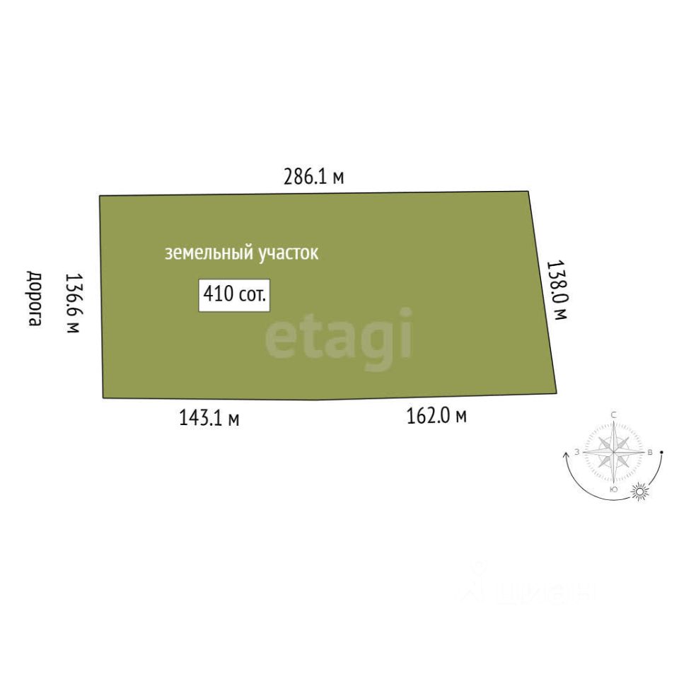Участок 4,1 га это возможность построить комфортабельный жилой комплекс с инфраструктурой или элитный коттеджный посёлок.