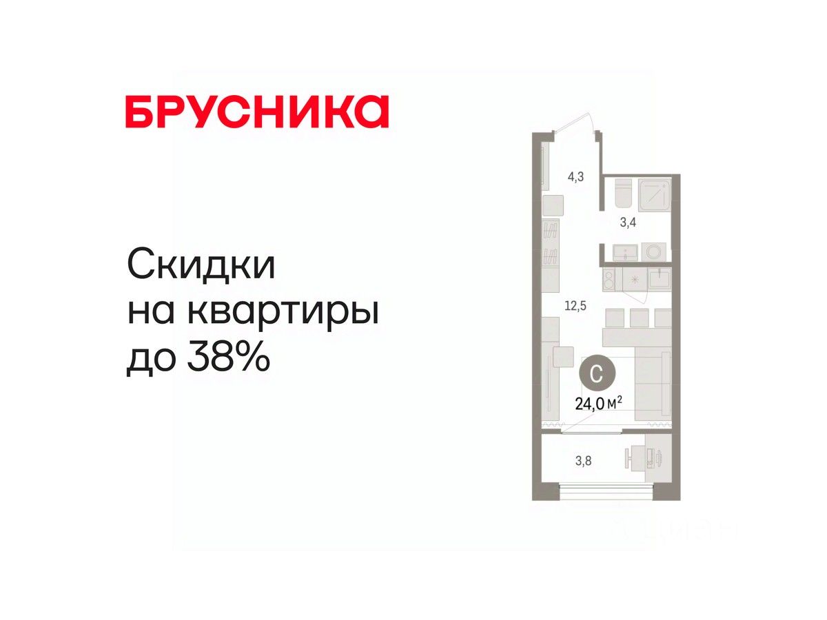 Студия в Октябрьском на Туре. Особенности планировки: предчистовая отделка, тёплая лоджия.