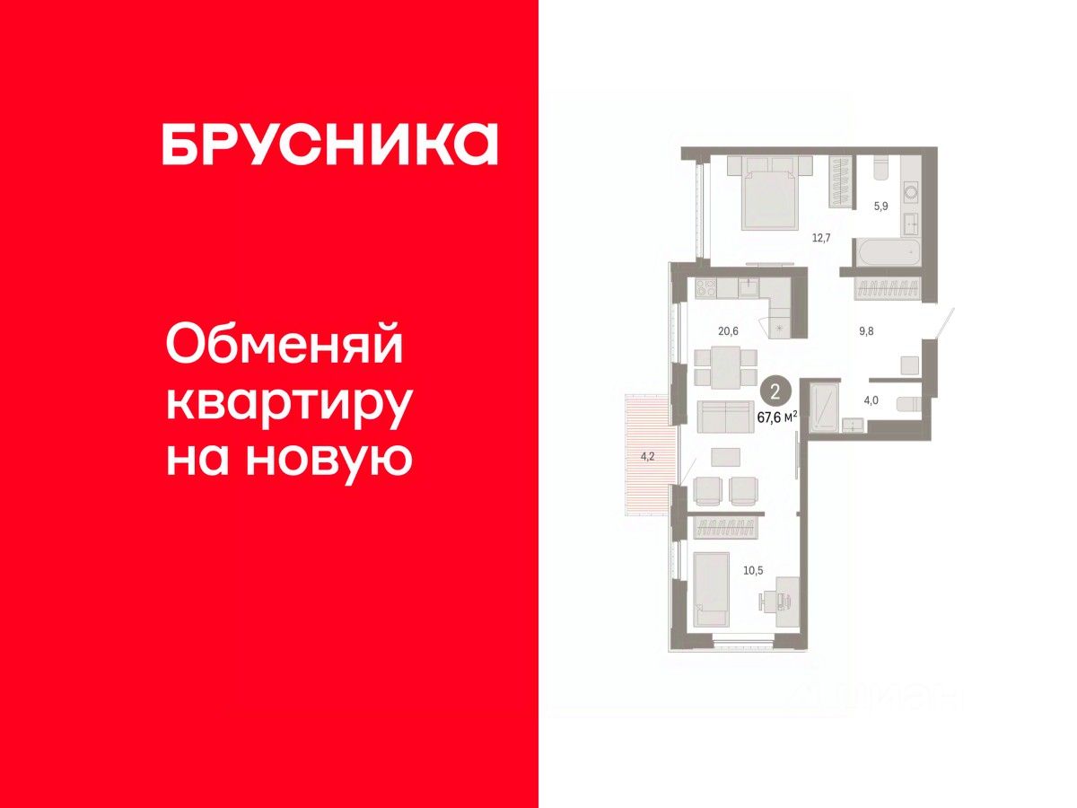 Квартира с кухней-гостиной и двумя спальнями в Октябрьском на Туре. Особенности планировки: балкон, предчистовая отделка.