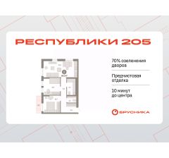 Просторная 2-комн. квартира с предчистовой отделкой в ЖК "Республики 205" на 2 этаже. Общая площадь: 64.51 кв.м., жилая: 21.4 кв.м., площадь просторной кухни-гостиной: 21 кв.м. Угловая квартира, идеально подойдет любителям тишины и панорамных видов. В квартире один балкон, один совмещенный и один раздельный санузел. Высота потолков 2.6 м.