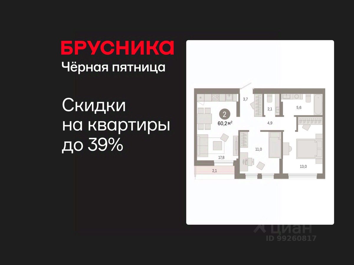 Двухкомнатная квартира от застройщика с предчистовой отделкой в ЖК "Республики 205" на 9 этаже. Общая площадь: 60.2 кв.м., жилая: 24 кв.м., площадь просторной кухни-гостиной: 17.8 кв.м. Комнаты изолированные, все окна выходят на одну сторону. В квартире одна лоджия, один совмещенный и один раздельный санузел. Высота потолков 2.6 м.