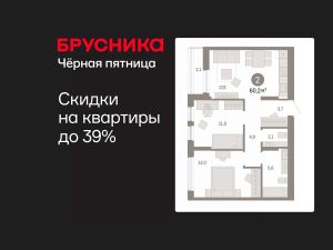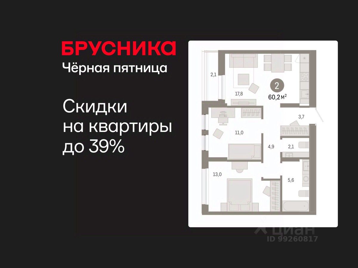 Просторная 2-комн. квартира с предчистовой отделкой в ЖК "Республики 205" на 9 этаже. Общая площадь: 60.19 кв.м., жилая: 24 кв.м., площадь просторной кухни-гостиной: 17.8 кв.м. Комнаты изолированные, все окна выходят на одну сторону. В квартире одна лоджия, один раздельный санузел. Высота потолков 2.6 м.
