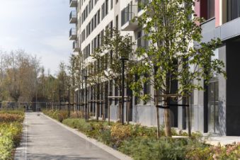 Пешеходные бульвары внутри района соединят между собой улицу ресторанов, детские и спортивные площадки, событийную площадь и летний кинотеатр.
