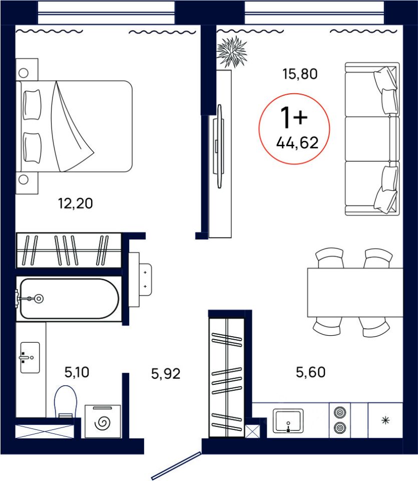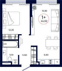 Общая площадь44,62 м²