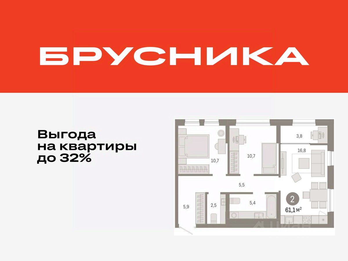 Просторная двухкомнатная квартира с предчистовой отделкой в ЖК "Республики 205" на 12 этаже. Общая площадь: 61.06 кв.м., жилая: 21.4 кв.м., площадь просторной кухни-гостиной: 16.8 кв.м. Угловая квартира, идеально подойдет любителям тишины и панорамных видов. В квартире одна лоджия, один совмещенный и один раздельный санузел. Высота потолков 2.6 м.