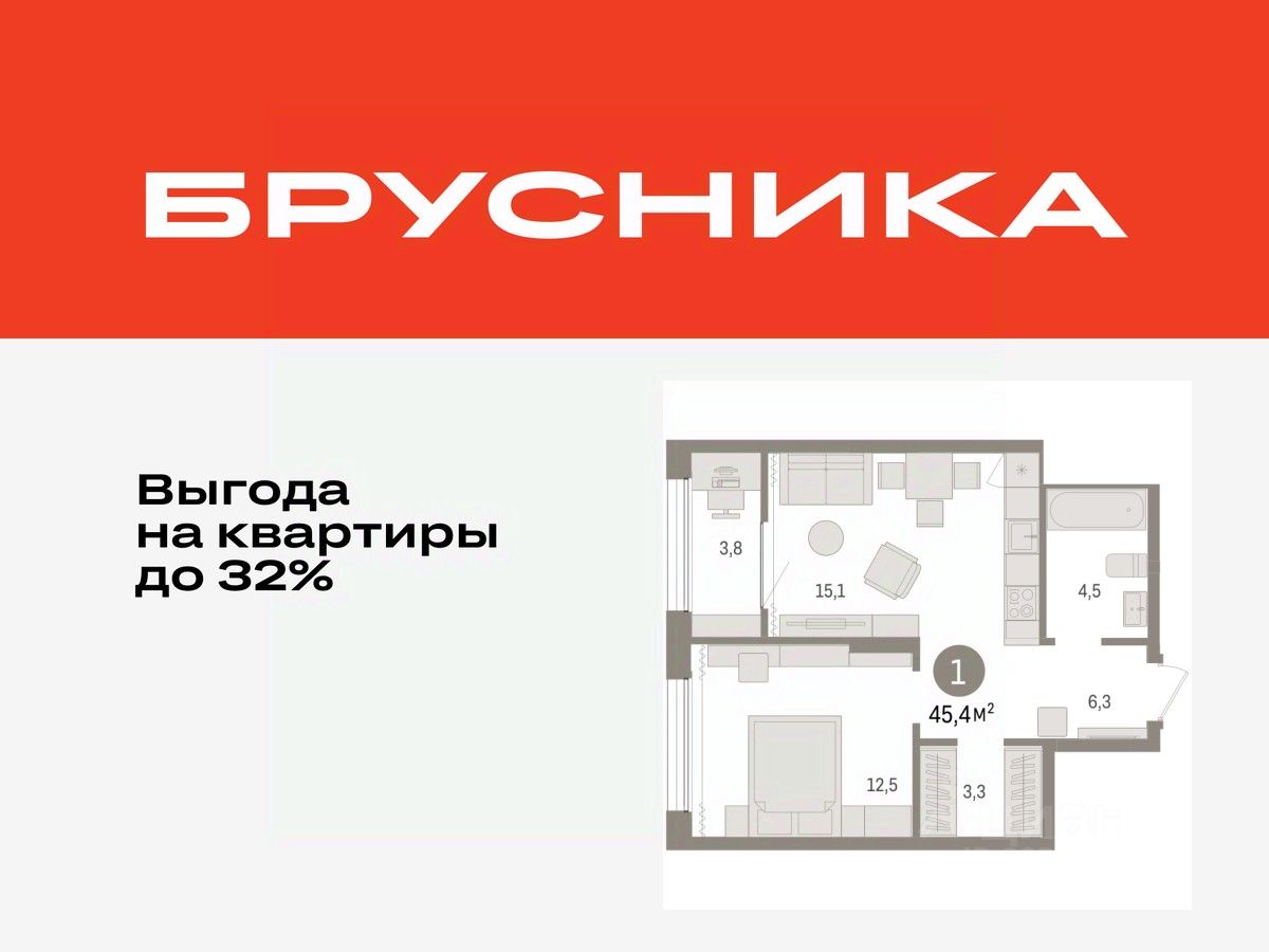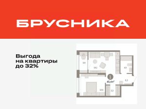 Квартира с кухней-гостиной и одной спальней в Октябрьском на Туре. Особенности планировки: гардеробная, вид во двор, тёплая лоджия, предчистовая отделка.