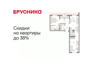 Квартира с кухней-гостиной и тремя спальнями в Октябрьском на Туре. Особенности планировки: вид во двор, мастер-спальня, предчистовая отделка, рабочий кабинет, разнесённые спальни, терраса на крыше.