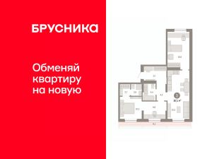 Квартира с кухней-гостиной и тремя спальнями в Октябрьском на Туре. Особенности планировки: предчистовая отделка, рабочий кабинет, разнесённые спальни, терраса на крыше.