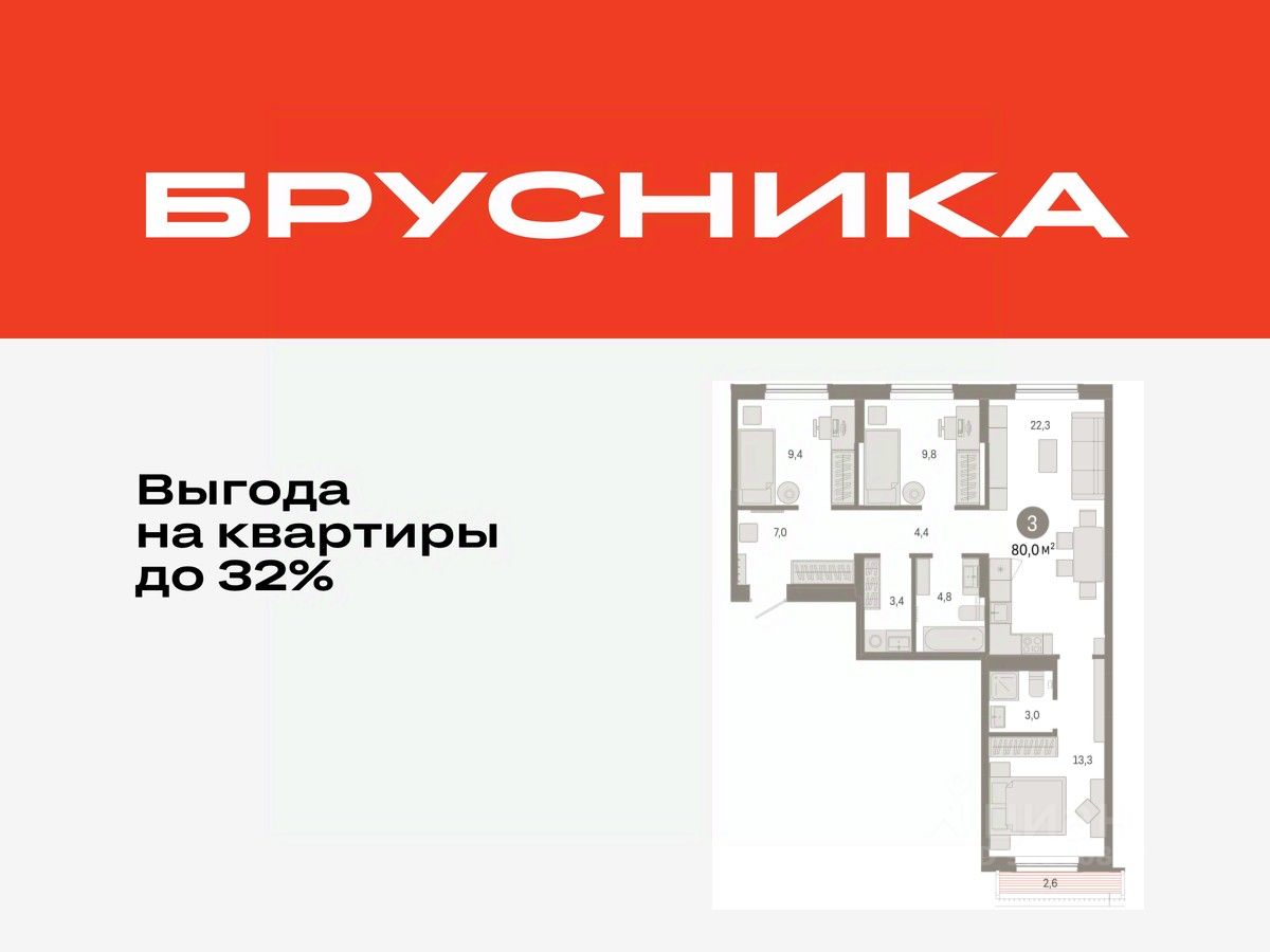 Квартира с кухней-гостиной и тремя спальнями в Октябрьском на Туре. Особенности планировки: вид во двор, разнесённые спальни, предчистовая отделка, мастер-спальня, постирочная, терраса на крыше.