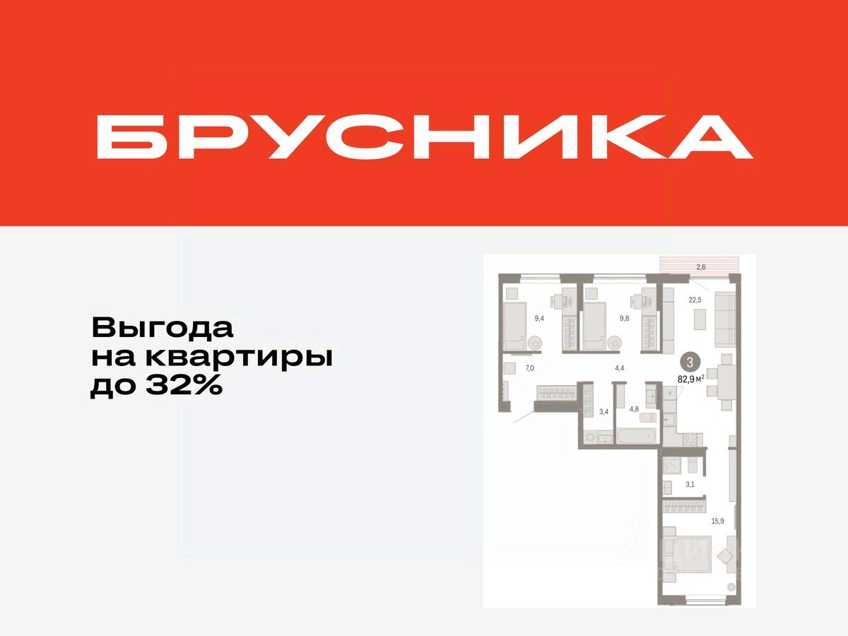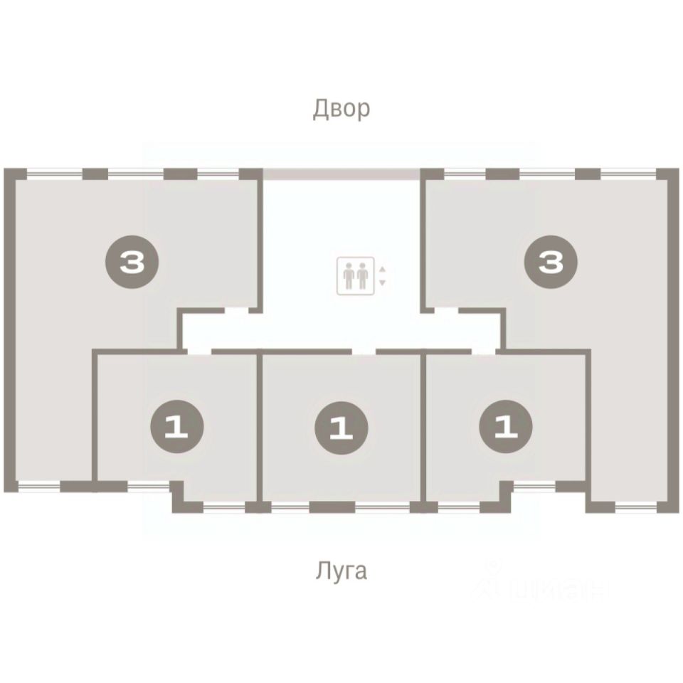 Квартира с кухней-гостиной и тремя спальнями в Октябрьском на Туре. Особенности планировки: вид во двор, разнесённые спальни, предчистовая отделка, мастер-спальня, постирочная, балкон.