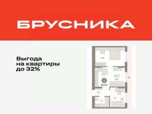 Квартира с кухней-гостиной и двумя спальнями в Октябрьском на Туре. Особенности планировки: разнесённые спальни, предчистовая отделка, терраса на крыше.