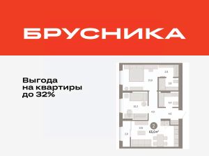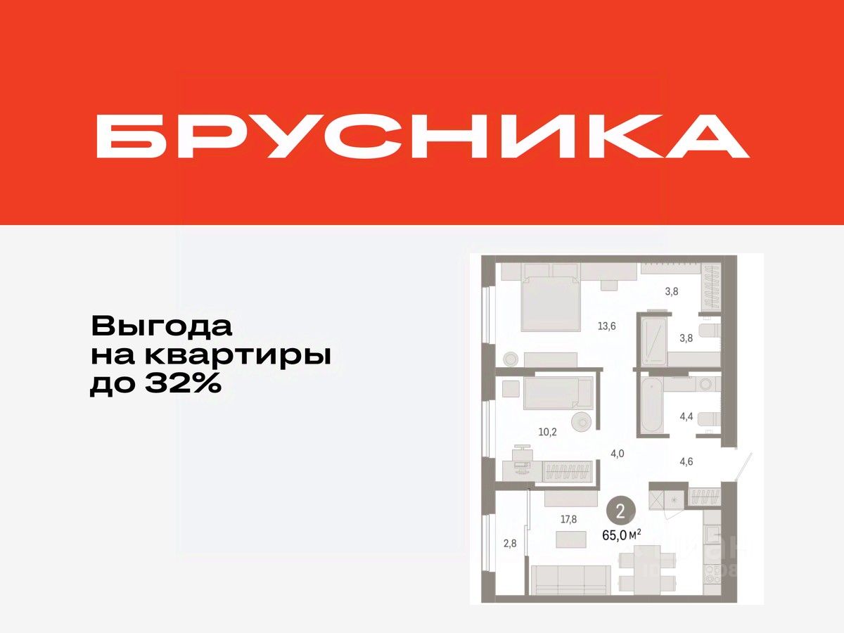 Квартира с кухней-гостиной и двумя спальнями в Октябрьском на Туре. Особенности планировки: тёплая лоджия, предчистовая отделка, мастер-спальня.