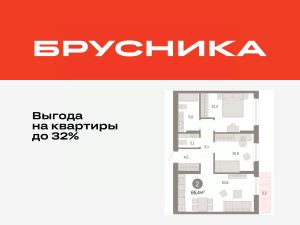 Двухкомнатная квартира от застройщика с предчистовой отделкой в ЖК "Республики 205" на 14 этаже. Общая площадь: 65.35 кв.м., жилая: 24.3 кв.м., площадь просторной кухни-гостиной: 20.8 кв.м. Комнаты изолированные, все окна выходят на одну сторону. В квартире один балкон, один совмещенный и один раздельный санузел. Высота потолков 2.6 м.