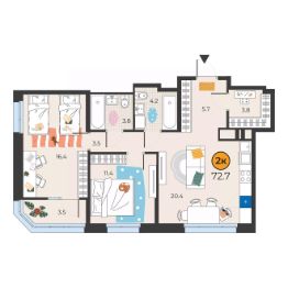 Общая площадь72,7 м²