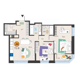 Общая площадь72,8 м²