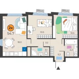 Общая площадь54,7 м²